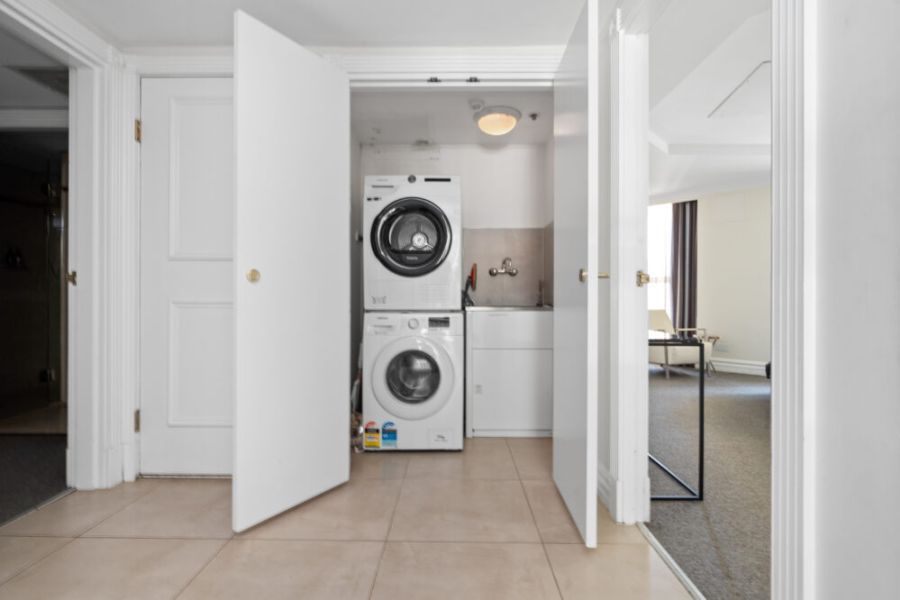 - Internal laundry with washing machine and clothes dryer