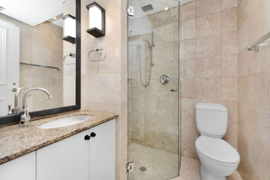 - Marble bathroom with walk-in shower