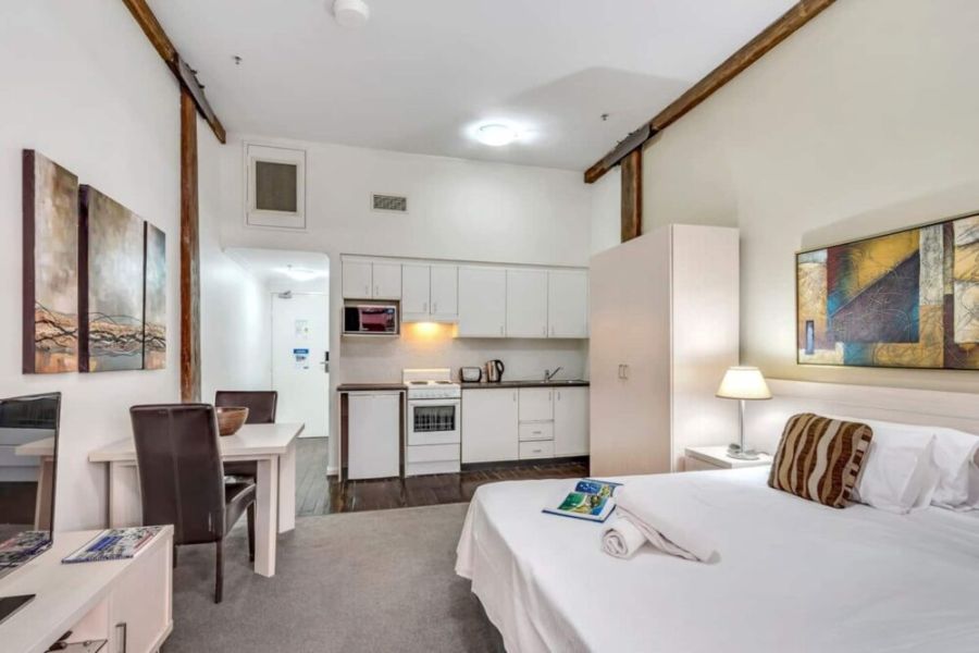 A well designed character filled studio apartment with hardwood polished floorboards, exposed timber beams, and resort like facilities, only a short walk to the city centre.